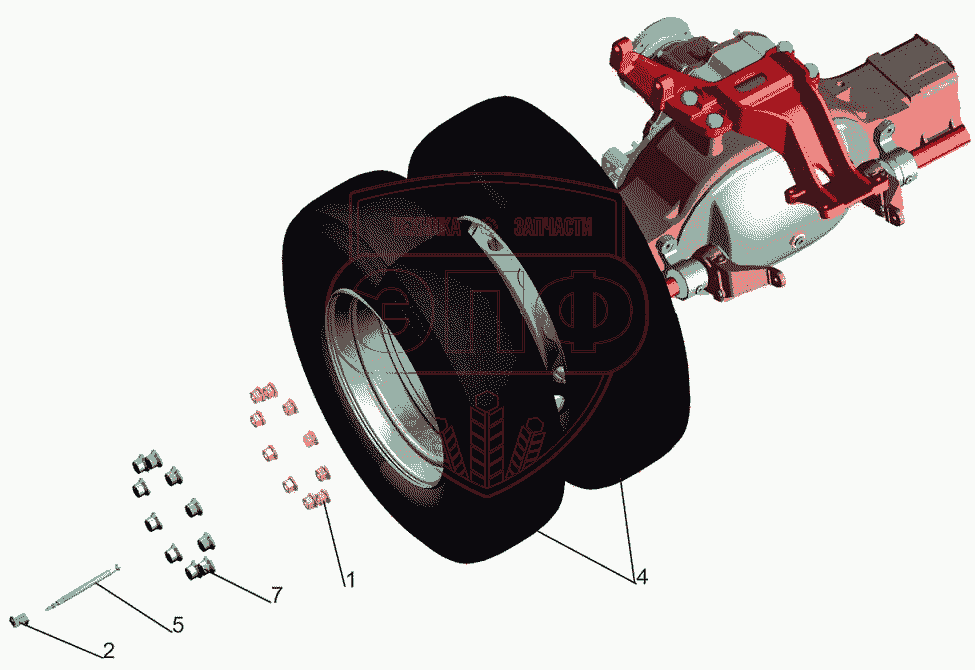 Каталог запасных частей к технике: МАЗ-6501B9. Установка задних колес