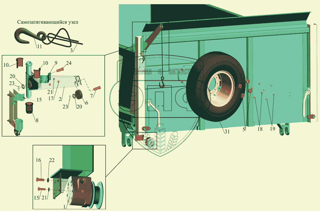 Каталог запасных частей к технике: МАЗ-6501B9. Установка запасного колеса