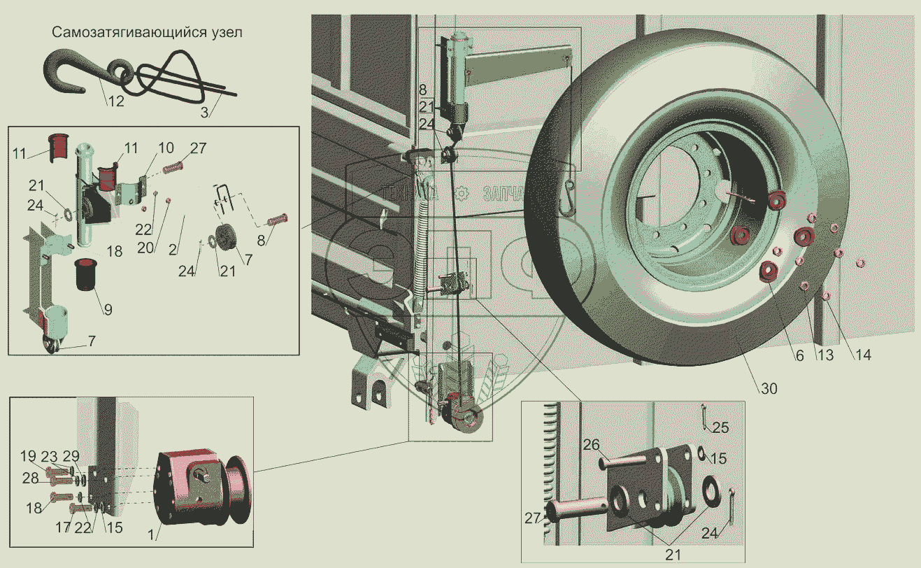 Каталог запасных частей к технике: МАЗ-6501B9. Установка запасного колеса