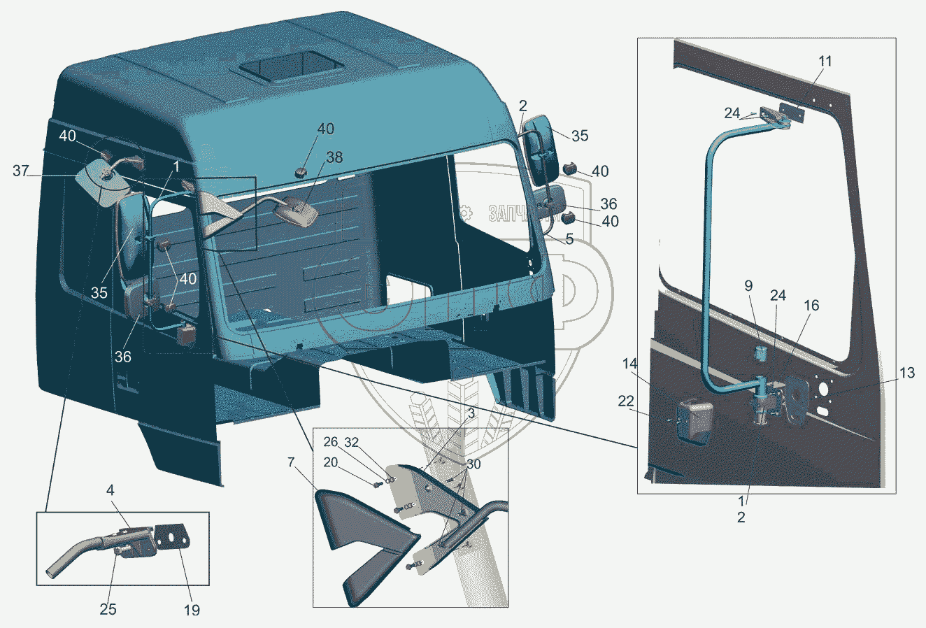 Каталог запасных частей к технике: МАЗ-6501B9. Установка зеркал 6430-8200005