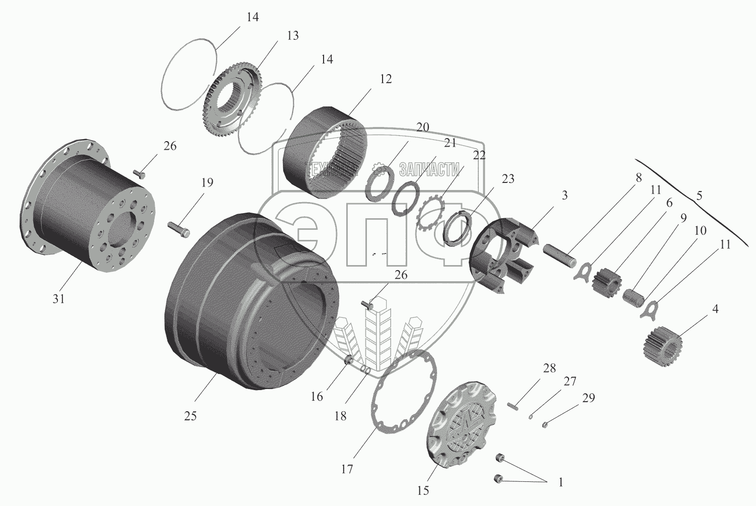 Каталог запасных частей к технике: МАЗ-651669-320 (340). Колесный редуктор