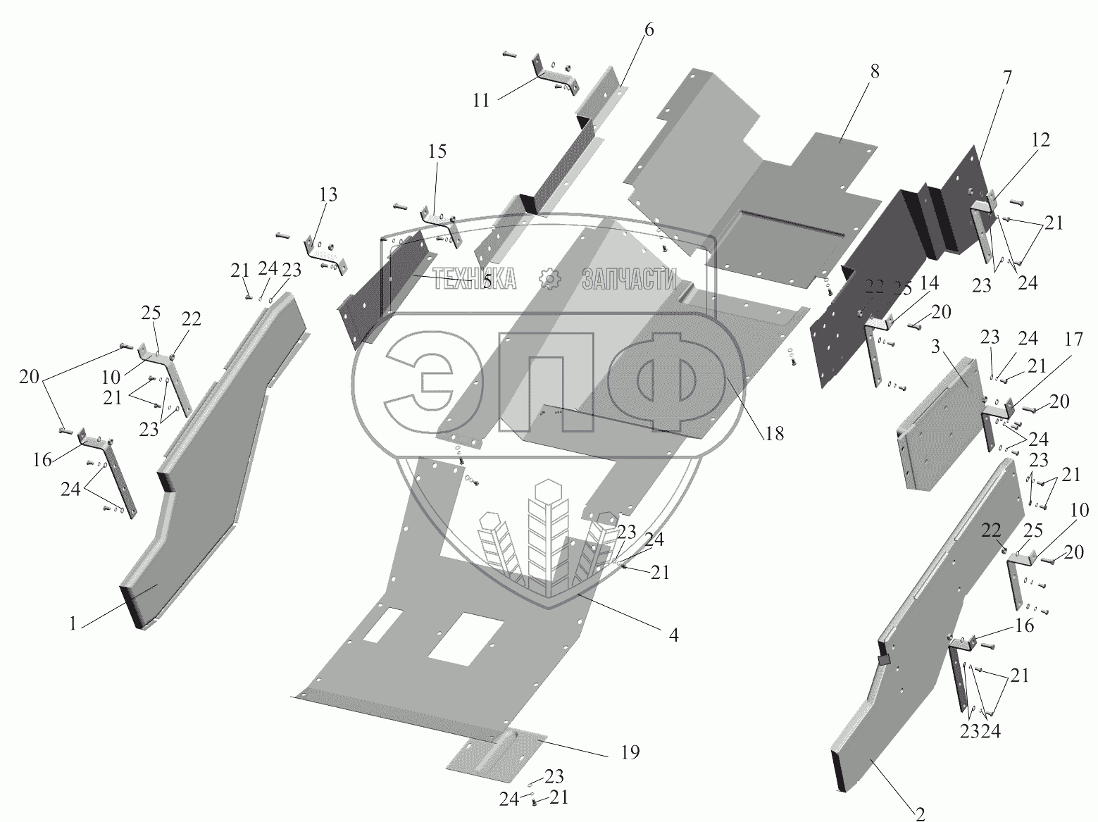 Каталог запасных частей к технике: МАЗ-651705. Установка шумоизоляционных экранов 631708-1061004