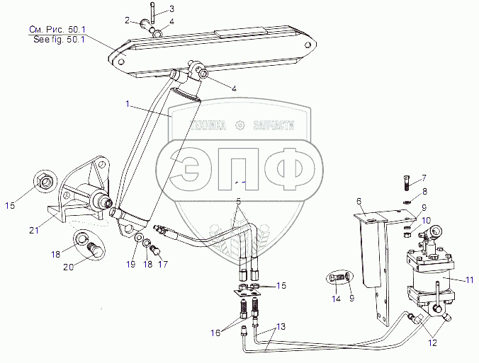 Каталог запасных частей к технике: МАЗ-74131. Механизм подъёма кабины