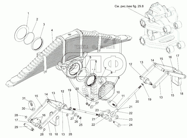 Каталог запасных частей к технике: МАЗ-74131. Подвеска задняя