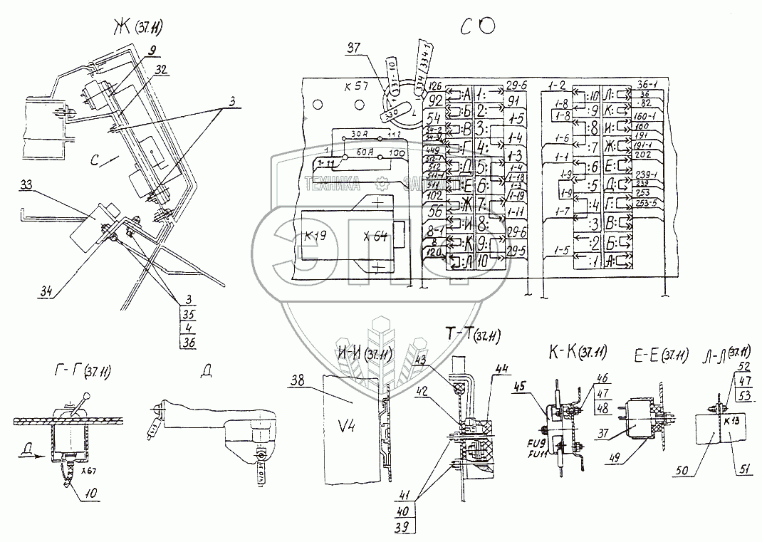 Каталог запасных частей к технике: МАЗ-74131. Установка электрооборудования в кабине