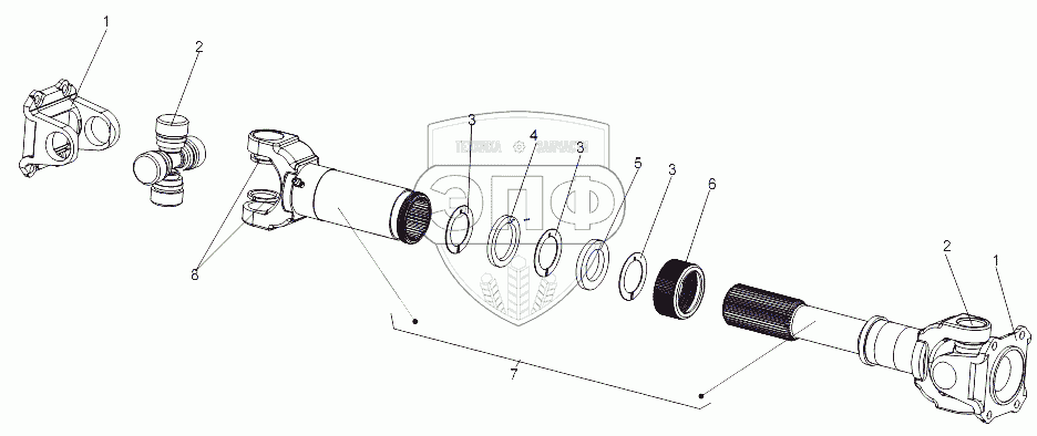 Каталог запасных частей к технике: МАЗ-74131. Вал карданный 7919-1316030