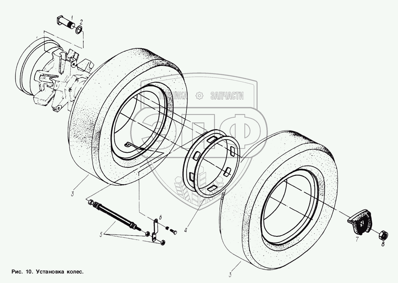 Каталог запасных частей к технике: МАЗ-83781. Установка колес