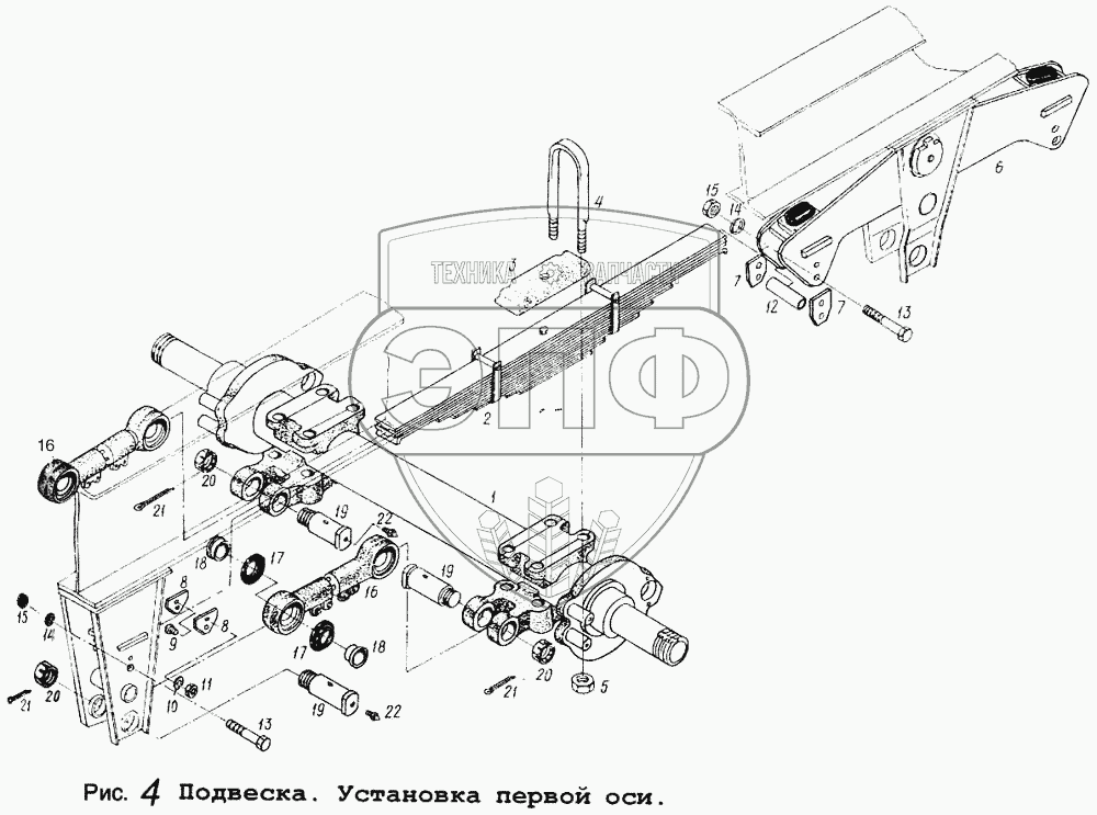Каталог запасных частей к технике: МАЗ-9008. Подвеска. Установка первой оси