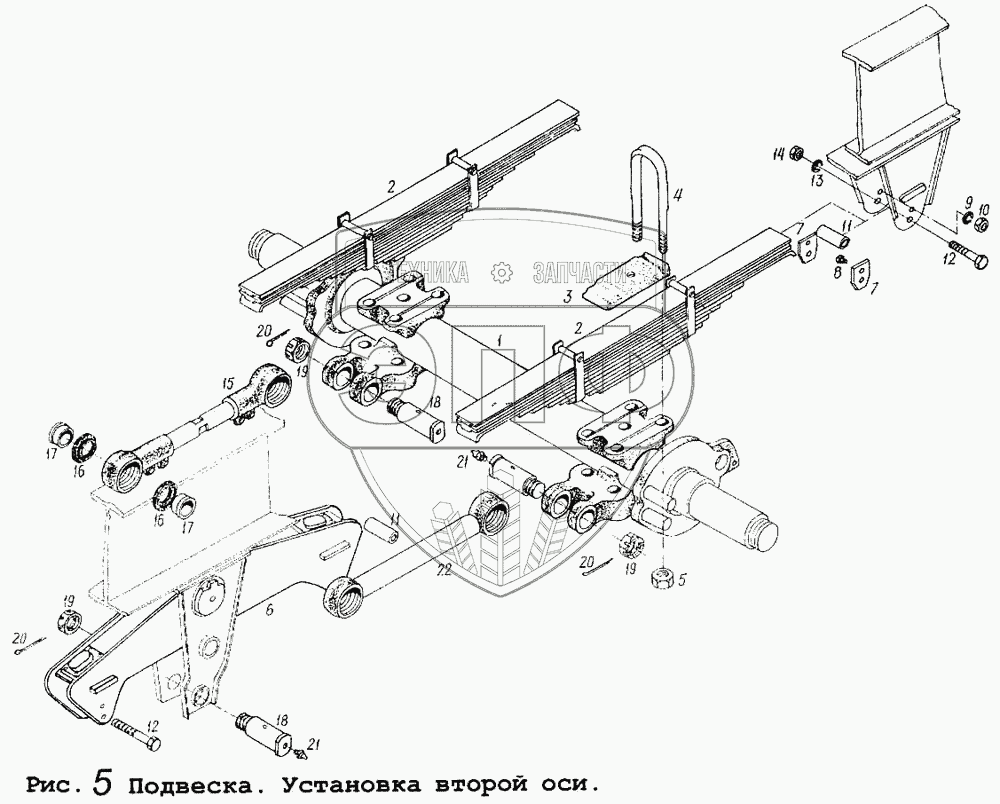 Каталог запасных частей к технике: МАЗ-9008. Подвеска. Установка второй оси