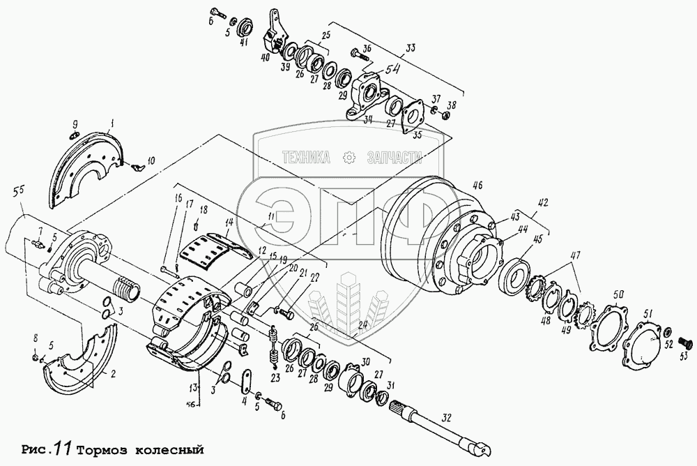 Каталог запасных частей к технике: МАЗ-9008. Тормоз колесный