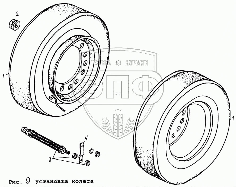 Каталог запасных частей к технике: МАЗ-9008. Установка колеса