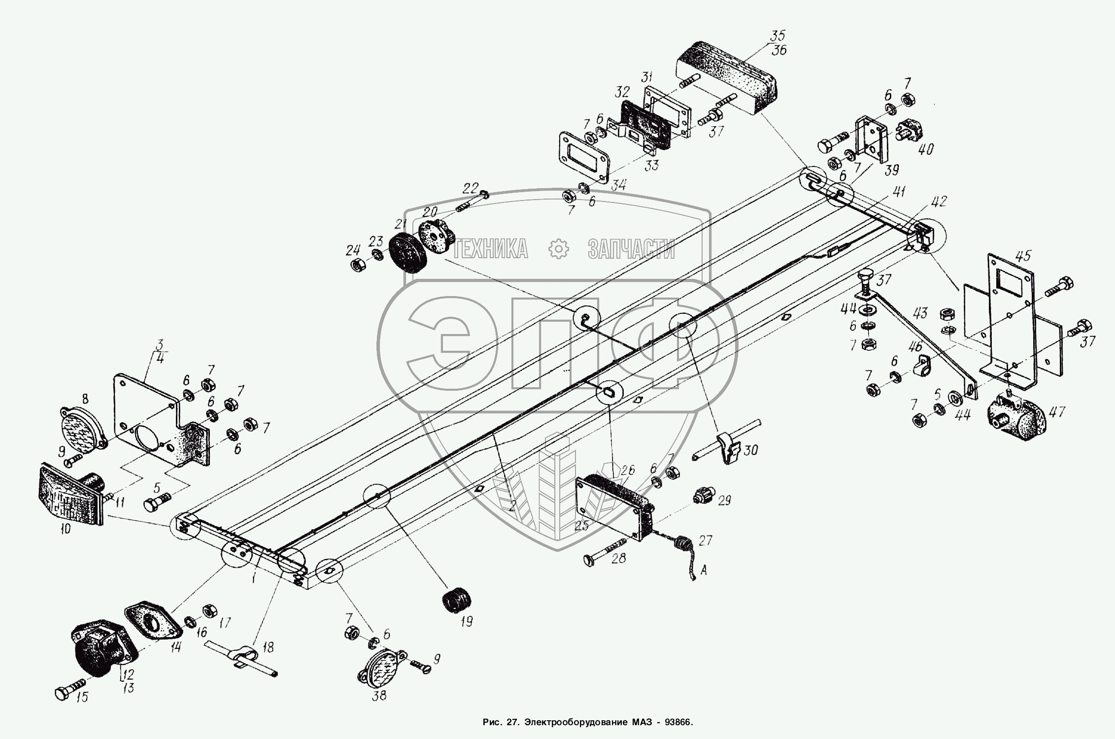 Каталог запасных частей к технике: МАЗ-93866. Электрооборудование МАЗ-93866