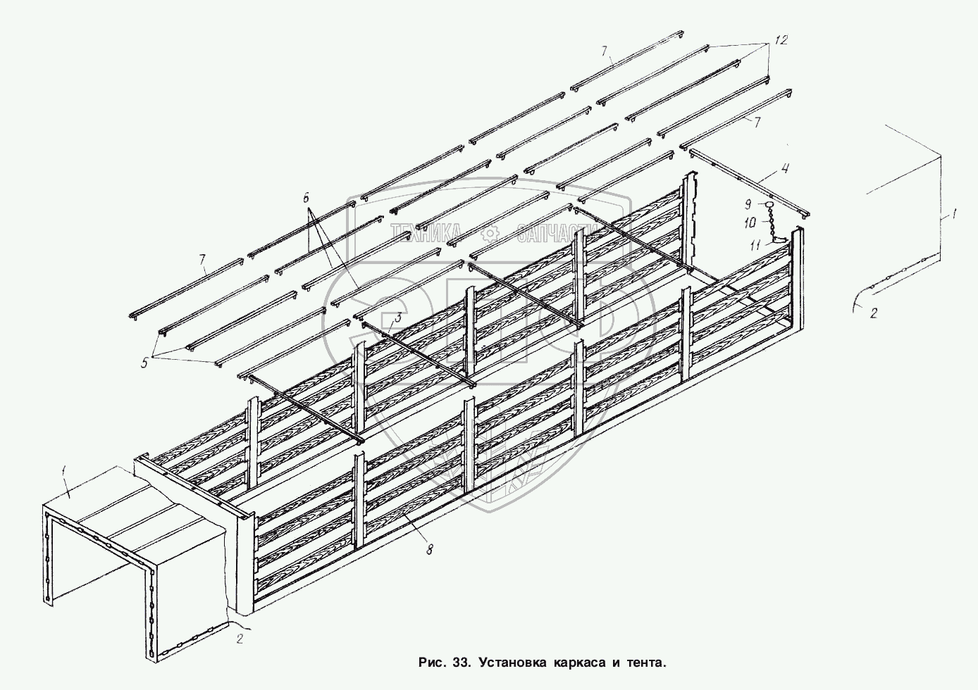 Каталог запасных частей к технике: МАЗ-93866. Установка каркаса и тента