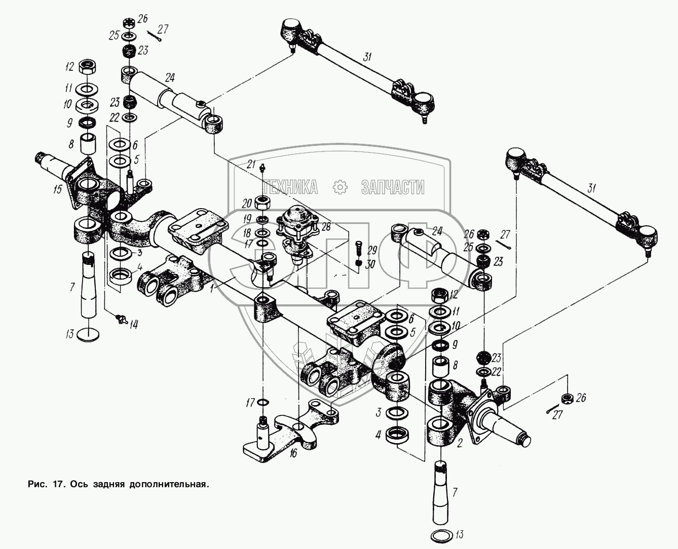 Каталог запасных частей к технике: МАЗ-93892. Ось задняя дополнительная