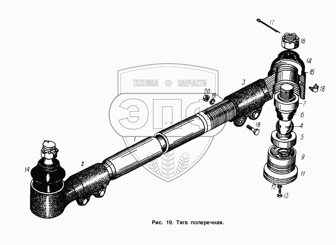 Каталог запасных частей к технике: МАЗ-93892. Тяга поперечная