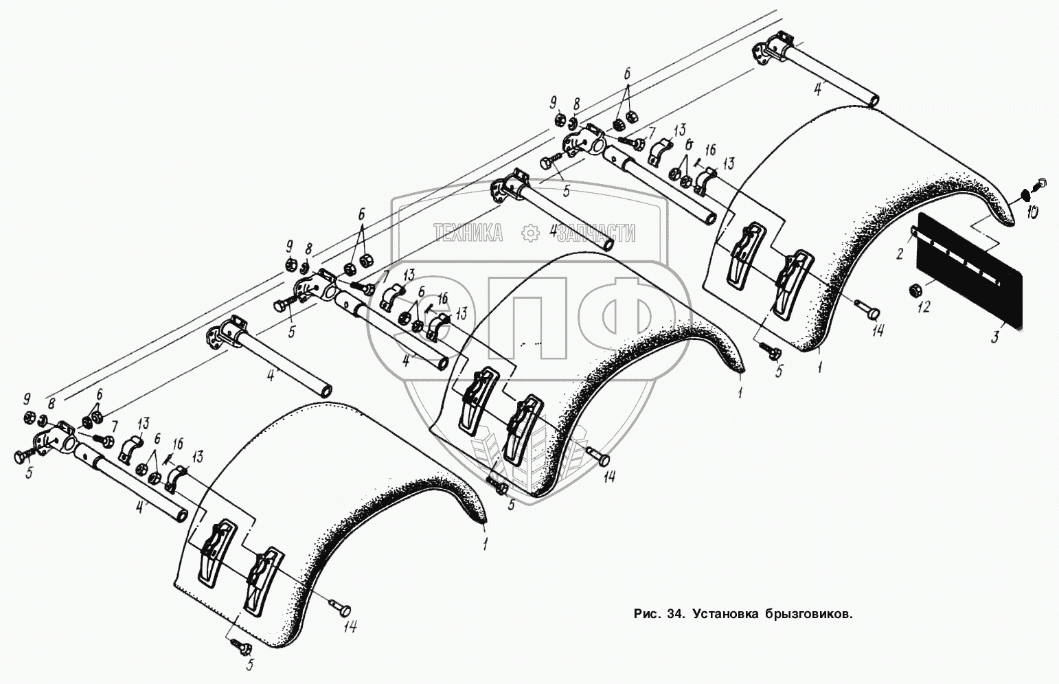 Каталог запасных частей к технике: МАЗ-93892. Установка брызговиков