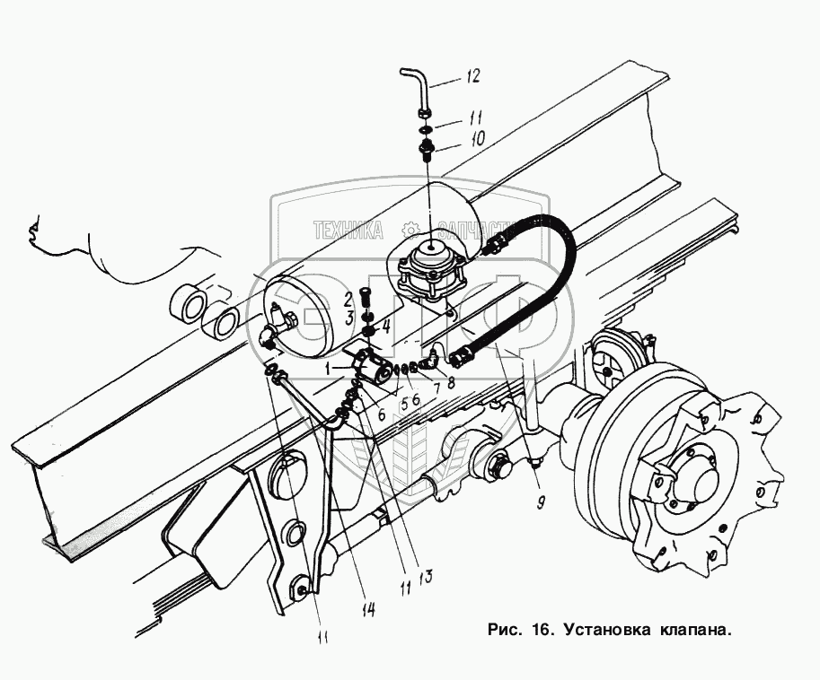 Каталог запасных частей к технике: МАЗ-93892. Установка клапана