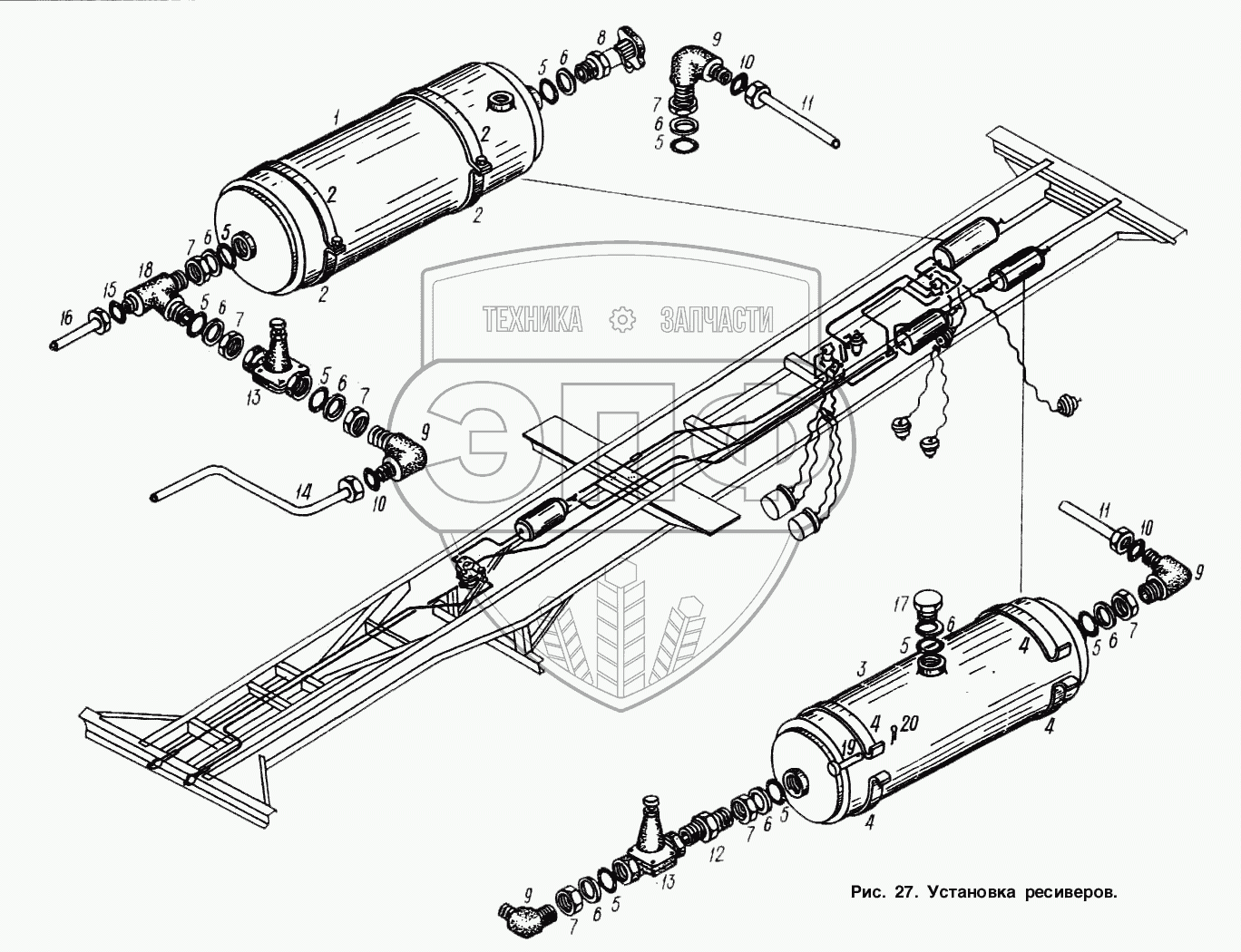 Каталог запасных частей к технике: МАЗ-93892. Установка ресиверов