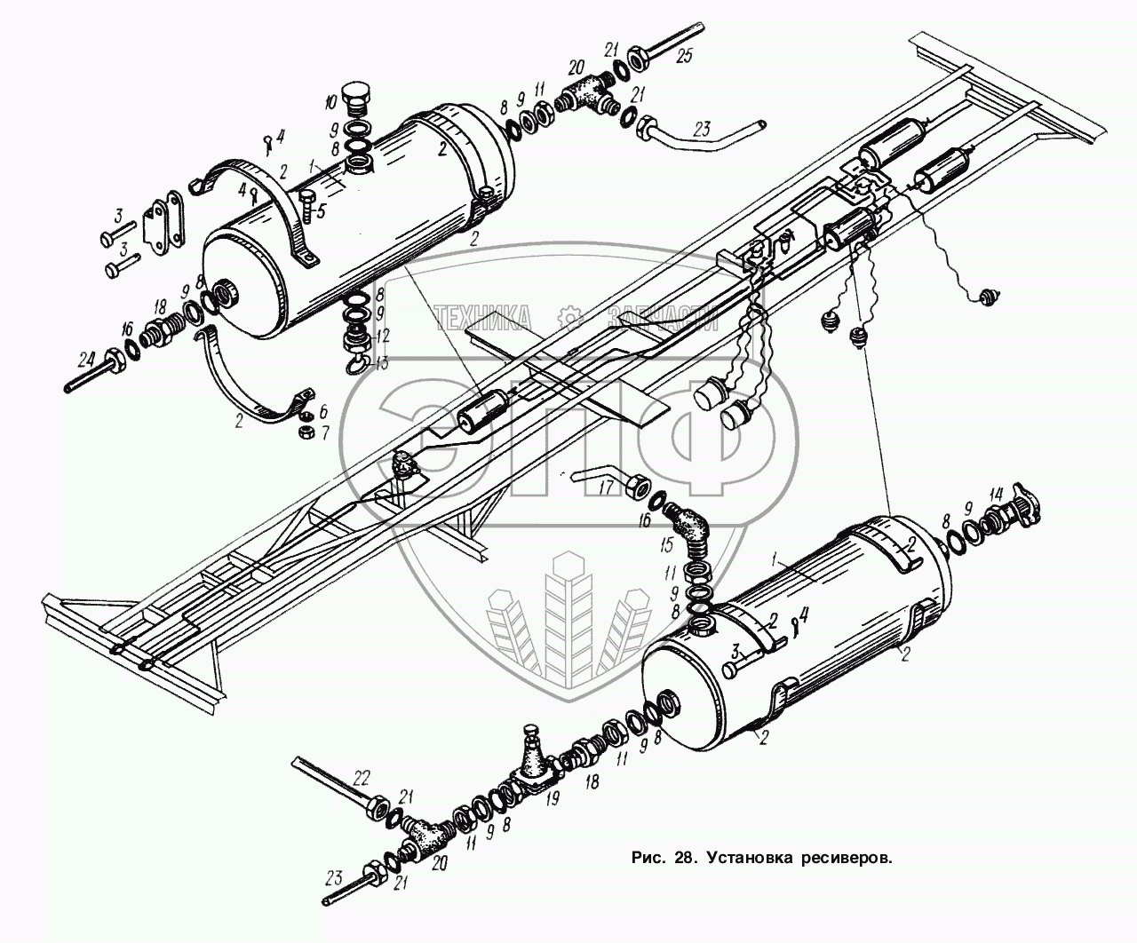 Каталог запасных частей к технике: МАЗ-93892. Установка ресиверов