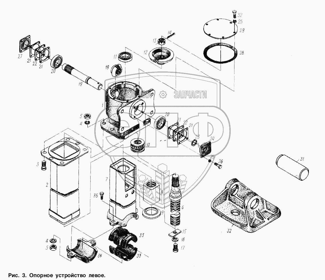 Каталог запасных частей к технике: МАЗ-9506. Опорное устройство левое