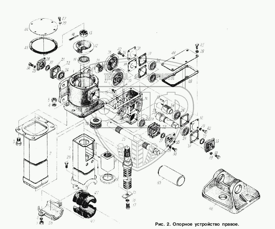 Каталог запасных частей к технике: МАЗ-9506. Опорное устройство правое