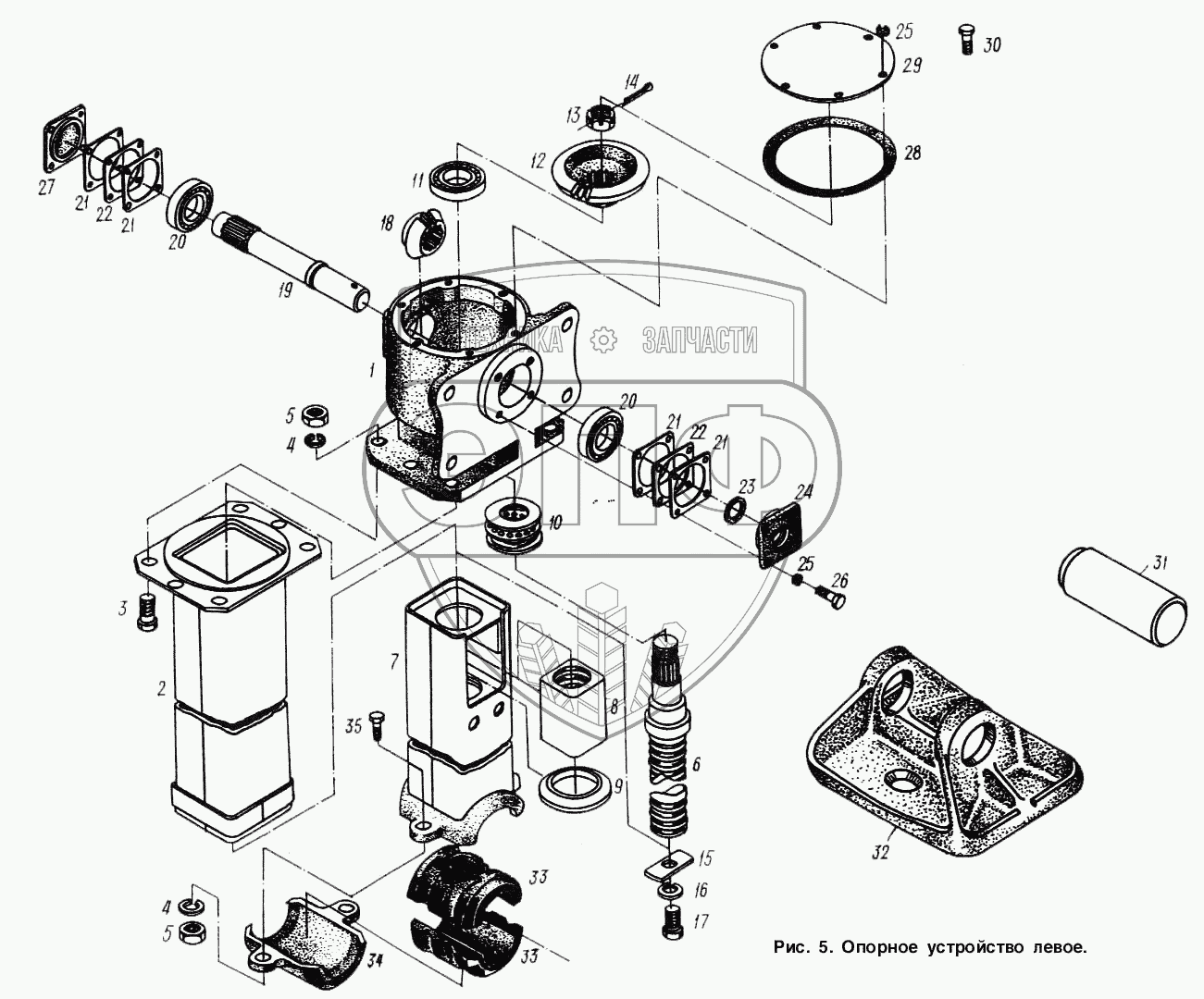 Каталог запасных частей к технике: МАЗ-9758-30. Опорное устройство левое