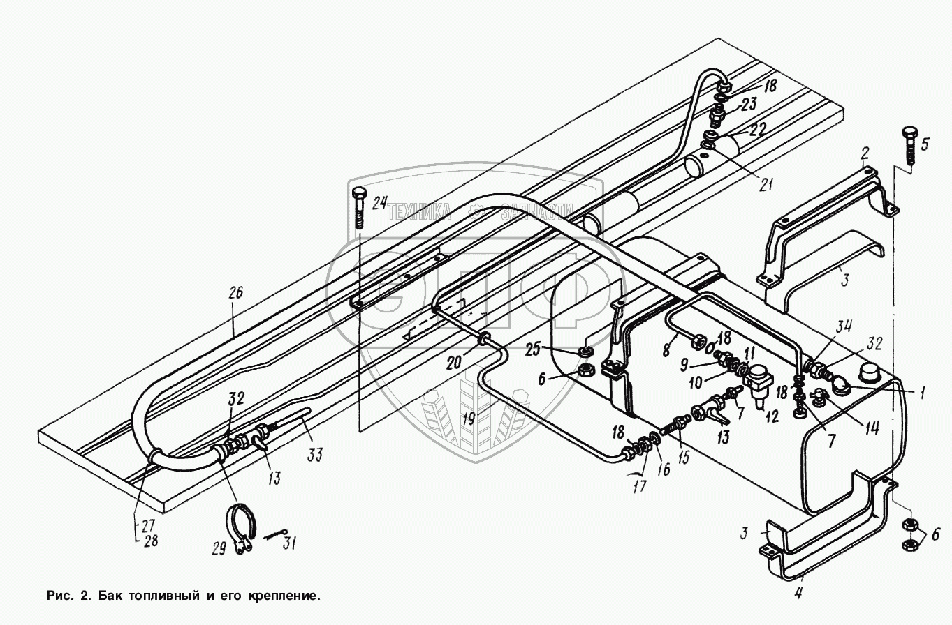 Каталог запасных частей к технике: МАЗ-9758. Бак топливный и его крепление