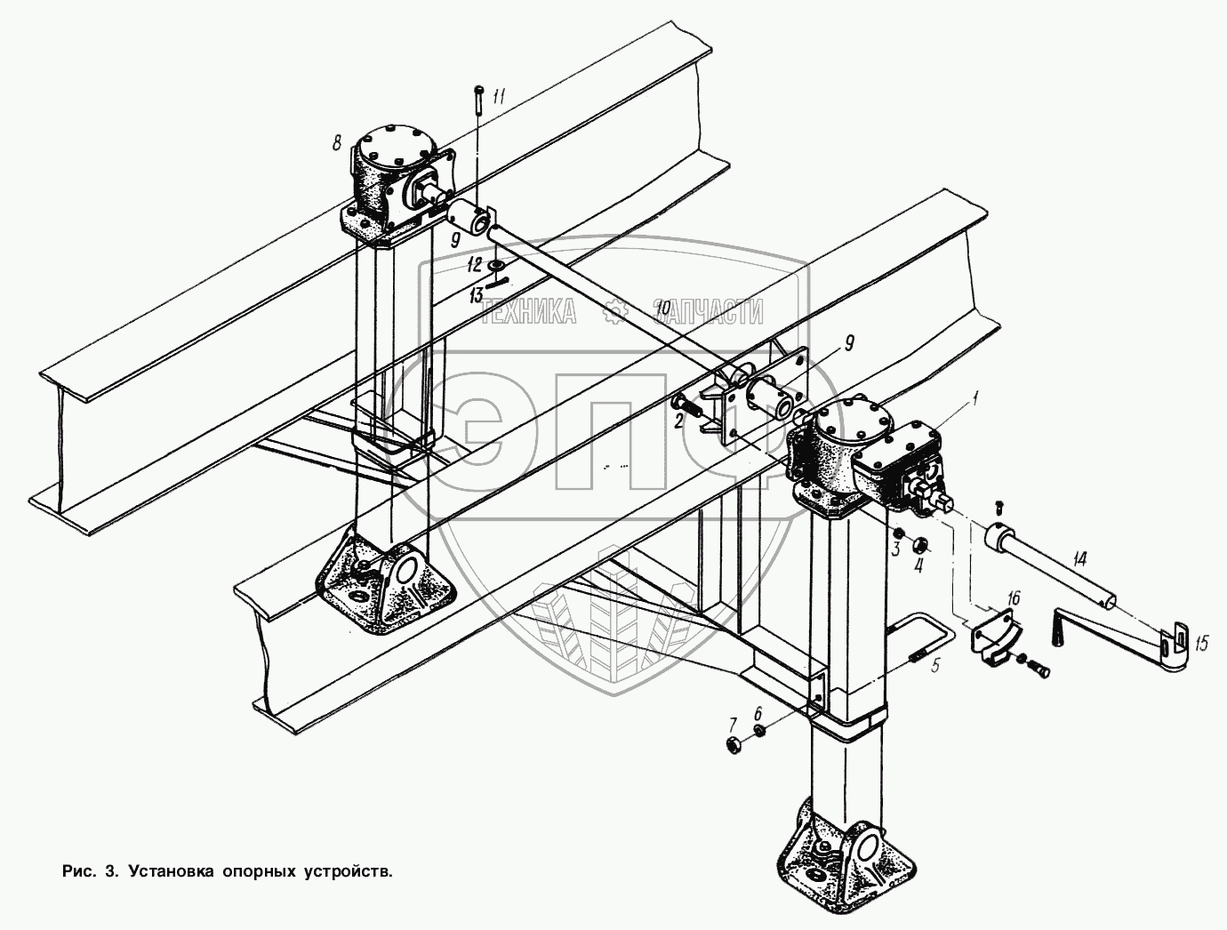 Каталог запасных частей к технике: МАЗ-9758. Установка опорных устройств