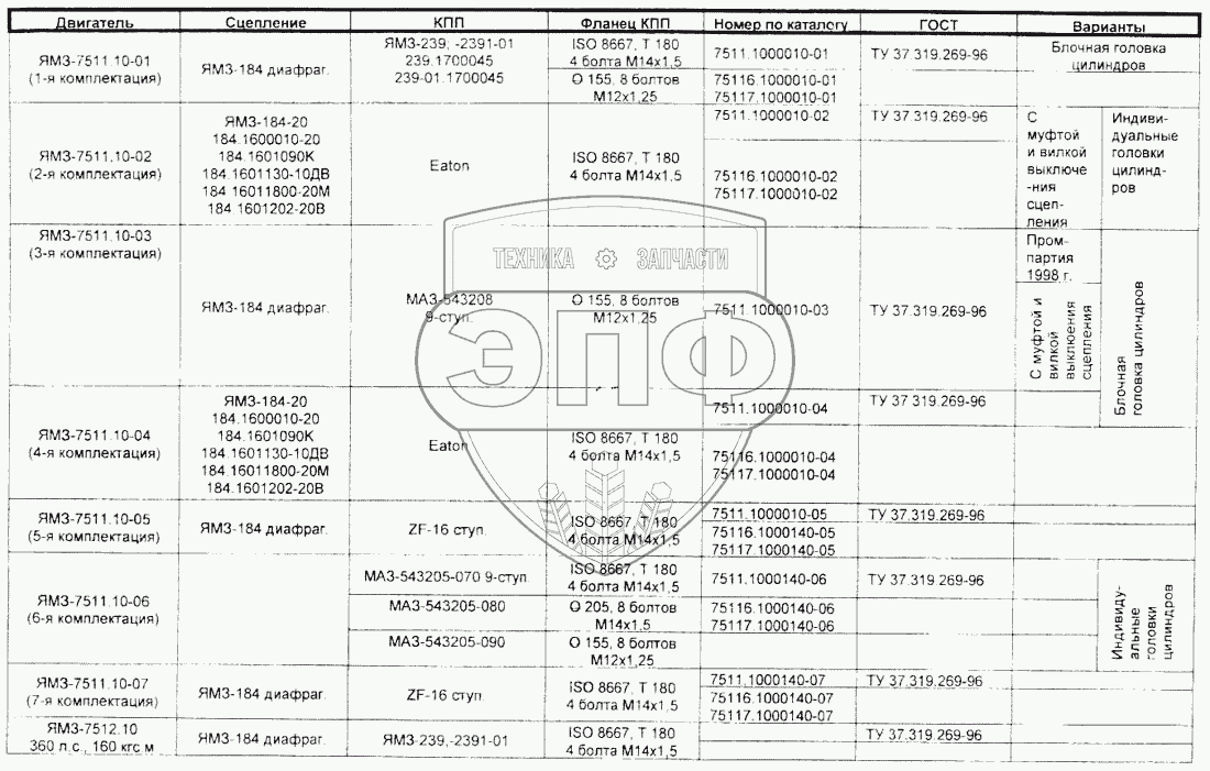 Каталог запасных частей к технике: МАЗ Справочник. Комплектация двигателей ЯМЗ