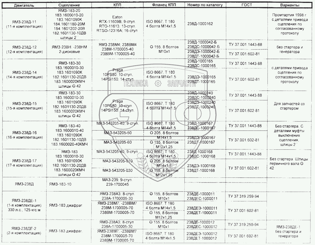 Каталог запасных частей к технике: МАЗ Справочник. Комплектация двигателей ЯМЗ