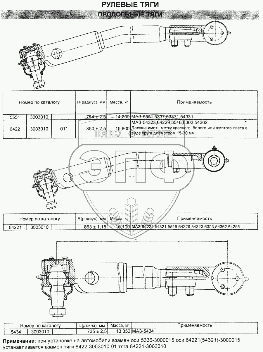 Каталог запасных частей к технике: МАЗ Справочник. Рулевые тяги