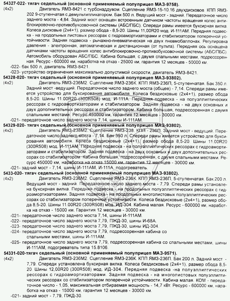 Каталог запасных частей к технике: МАЗ Справочник. Седельные тягачи