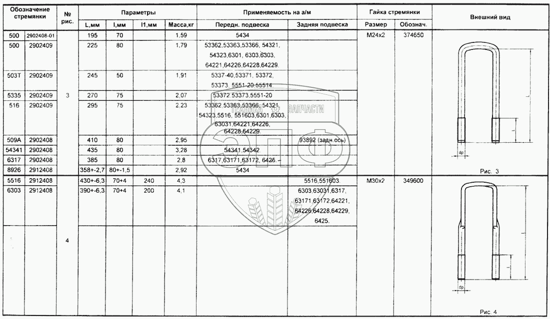 Каталог запасных частей к технике: МАЗ Справочник. Стремянки рессор. Применяемость и параметры