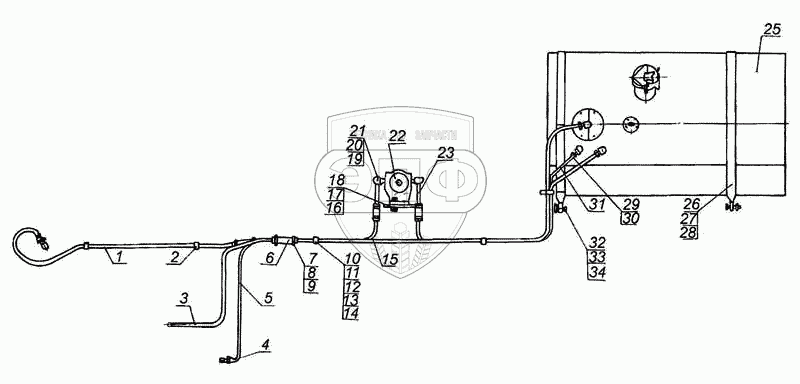 Каталог запасных частей к технике: МоАЗ-7505. Бак топливный. Монтаж трубопроводов