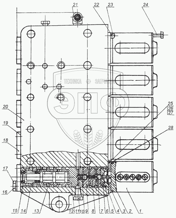 Каталог запасных частей к технике: МоАЗ-7505. Коробка золотниковая 7505-1712252