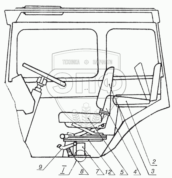 Каталог запасных частей к технике: МоАЗ-7505. Сиденье водителя