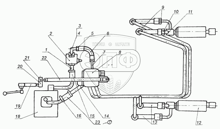 Каталог запасных частей к технике: МоАЗ-7505. Установка гидросистемы 7505-8600003
