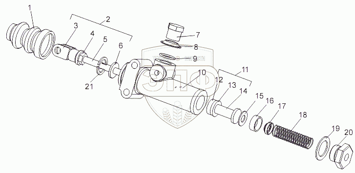 Каталог запасных частей к технике: МЗКТ-65151 "Волат". Подпедальный цилиндр 69237-1602300