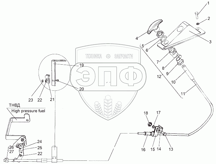 Каталог запасных частей к технике: МЗКТ-65151 "Волат". Привод останова двигателя