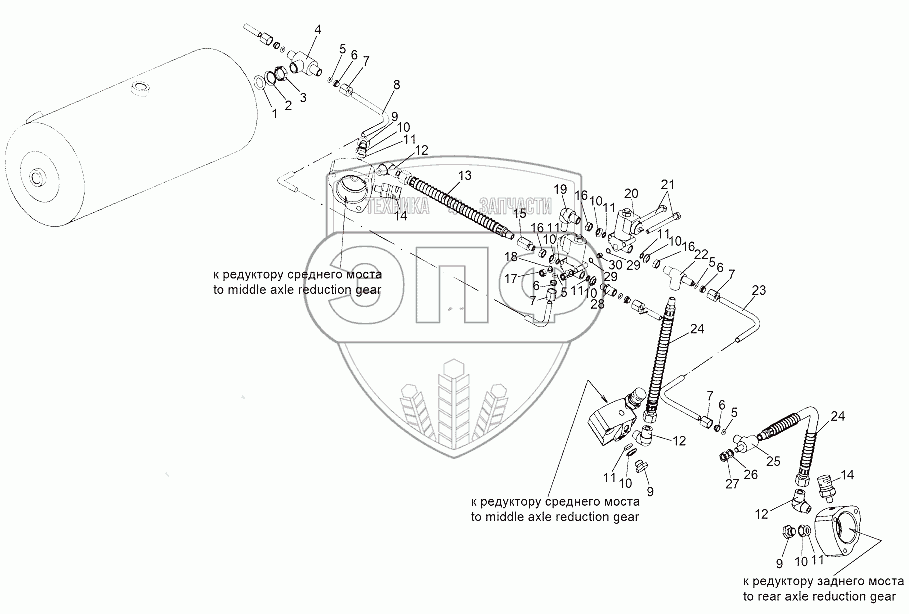 Каталог запасных частей к технике: МЗКТ-65151 "Волат". Привод управления блокировкой дифференциалов