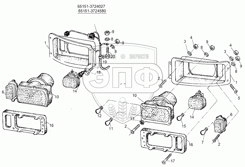 Каталог запасных частей к технике: МЗКТ-65151 "Волат". Установка головного освещения