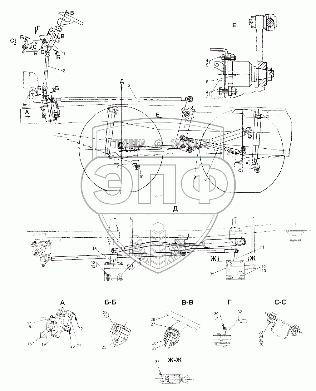 Каталог запасных частей к технике: МЗКТ-65151 "Волат". Установка рулевого управления