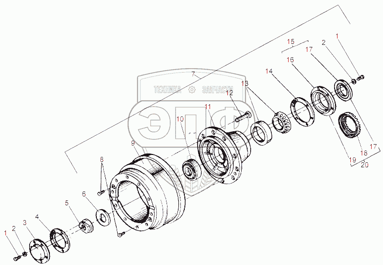 Каталог запасных частей к технике: МЗКТ-65151 "Волат". Установка ступиц колес