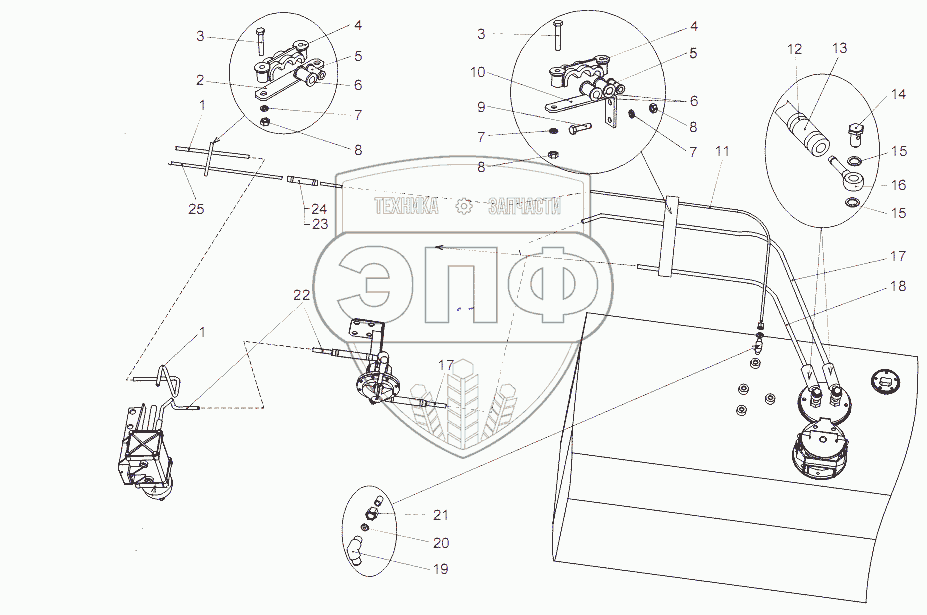 Каталог запасных частей к технике: МЗКТ-65151 "Волат". Установка топливопроводов