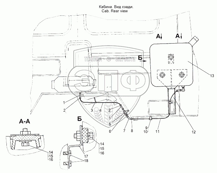 Каталог запасных частей к технике: МЗКТ-65151 "Волат". Установка топливопроводов независимого отопителя