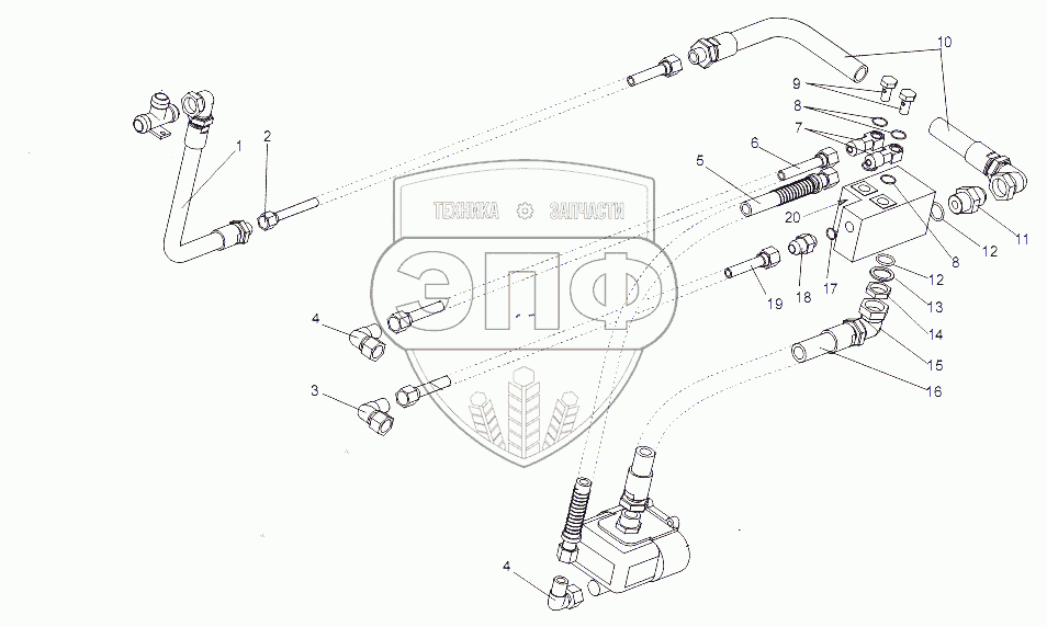 Каталог запасных частей к технике: МЗКТ-65151 "Волат". Установка трубопроводов блока клапанов