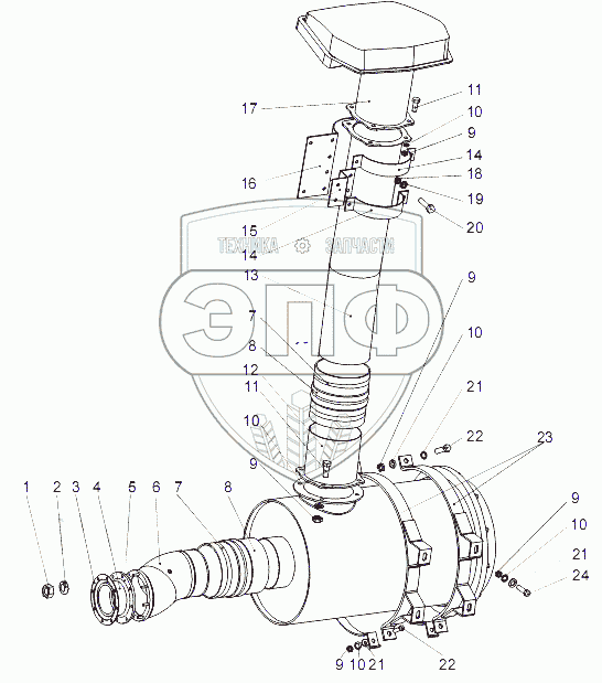 Каталог запасных частей к технике: МЗКТ-65151 "Волат". Установка воздухоочистителя