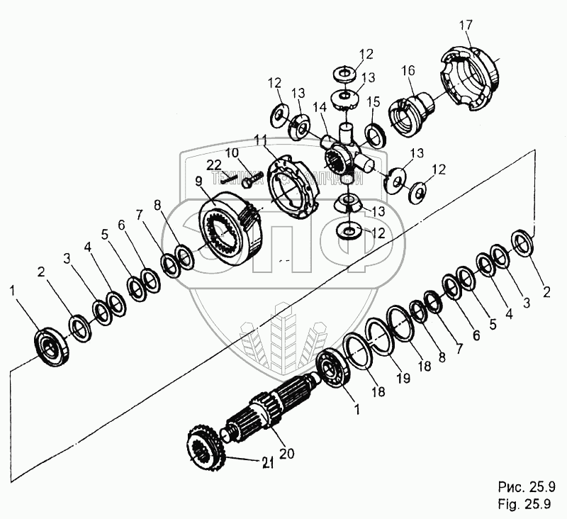 Каталог запасных частей к технике: МЗКТ-65158. Дифференциал межосевой