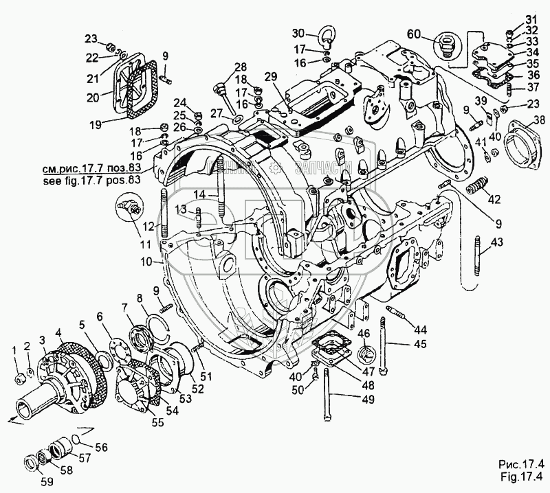 Каталог запасных частей к технике: МЗКТ-65158. Картерные детали коробки передач