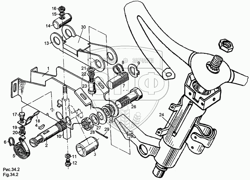 Каталог запасных частей к технике: МЗКТ-65158. Кронштейн с колонкой 64221-3403008